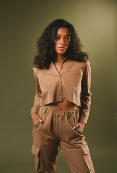 Tan Cropped Cotton Button Down